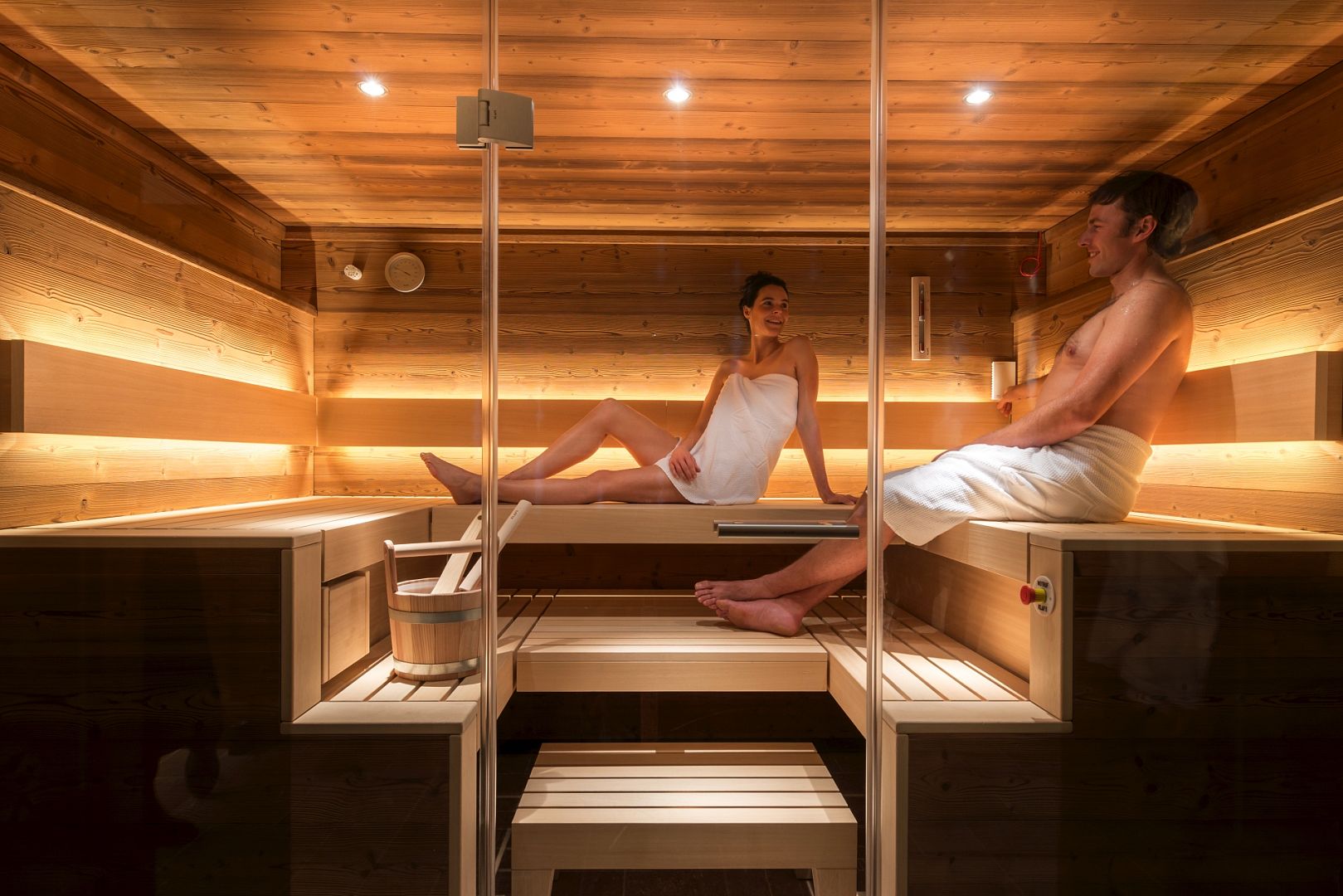 - Spa & Wellness: Relax in our in-house spa area with a 25-metre natural-stone pool, sauna, steam room, infrared sauna and relaxation rooms – open daily between 8 a.m. and 10 p.m.